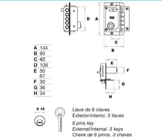 Cerradura FAC S90/P CON LLAVE DE SEGURIDAD