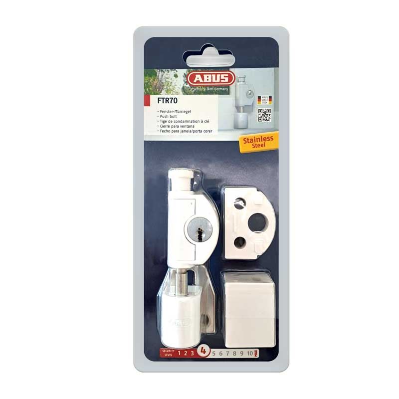 Cerradura ABUS FTR 70 para bloqueo de ventana corredera o ventanas que abran hacia el interior o exterior de fácil de instalar y muy versátiles.