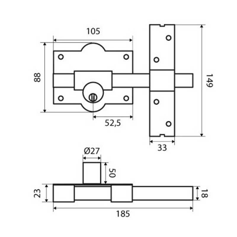 El bombillo redondo de este cerrojo facilita el accionamiento externo con llave y el interno mediante un botón. No guarda mano, lo que la hace versátil para instalaciones en cualquier tipo de puerta. Además, se proporciona con tres llaves de perfil de serreta, asegurando la disponibilidad de copias adicionales si es necesario.