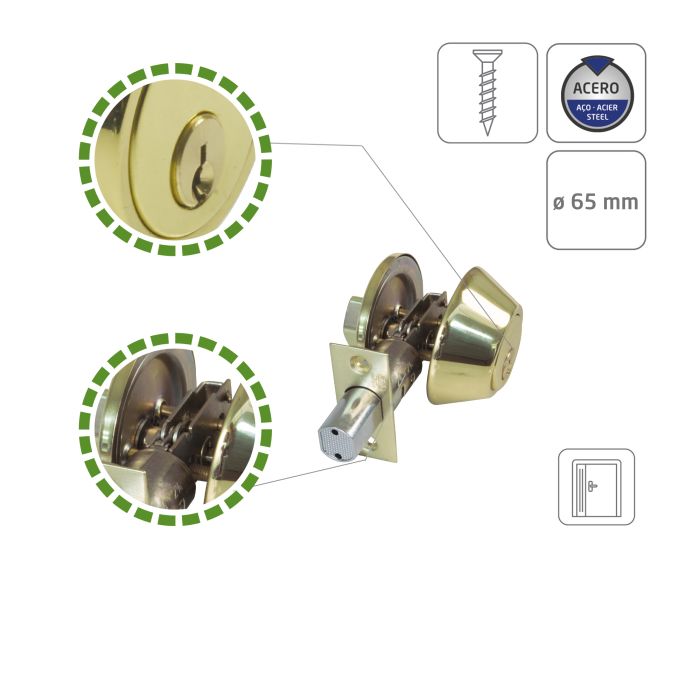 • Cerrojo de roseta con llave exterior y condena interior.