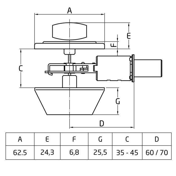 • Entrada del cerrojo: 60 y 70 mm.