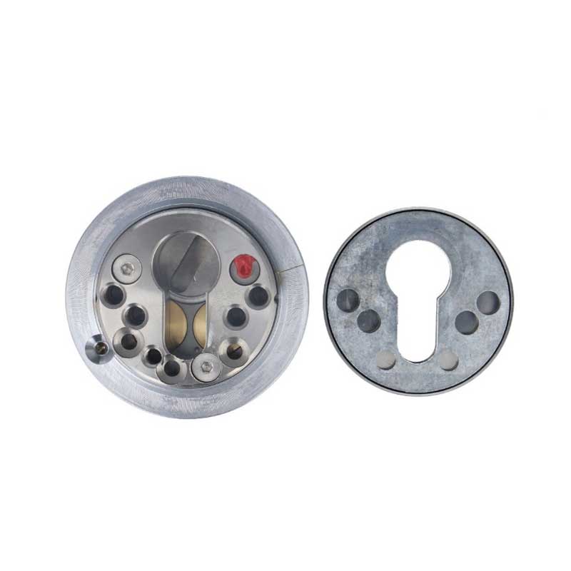 El escudo acorazado MRM29 para bombines es además de un escudo de seguridad macizo, un escudo que permite la ocultación total del bombín mediante el giro con llave magnética lo que ofrece mayor seguridad, antivandalismo (anti-palillos, anti-silicona, anti-pegamento) y posibilidad de un sencillo control de acceso ya que permite el cierre de manera que una persona que habitualmente dispone de llave (personal de servicio), no podrá abrir salvo que se le abra el sistema.