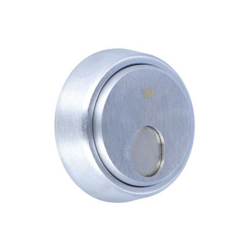 - En la instalación, el núcleo del escudo gira sobre el aro exterior para meterlo o sacarlo para ajustarlo a la medida adecuada al bombín. Este giro del núcleo para la regulación es suave y tiene un tope que no debe forzarse. Si lo forzamos y sobrepasamos el tope, el núcleo puede seguir entrando pero de ese modo se estropeará el escudo.