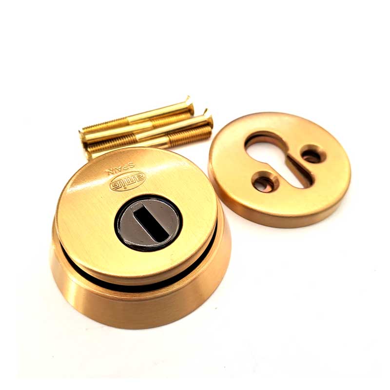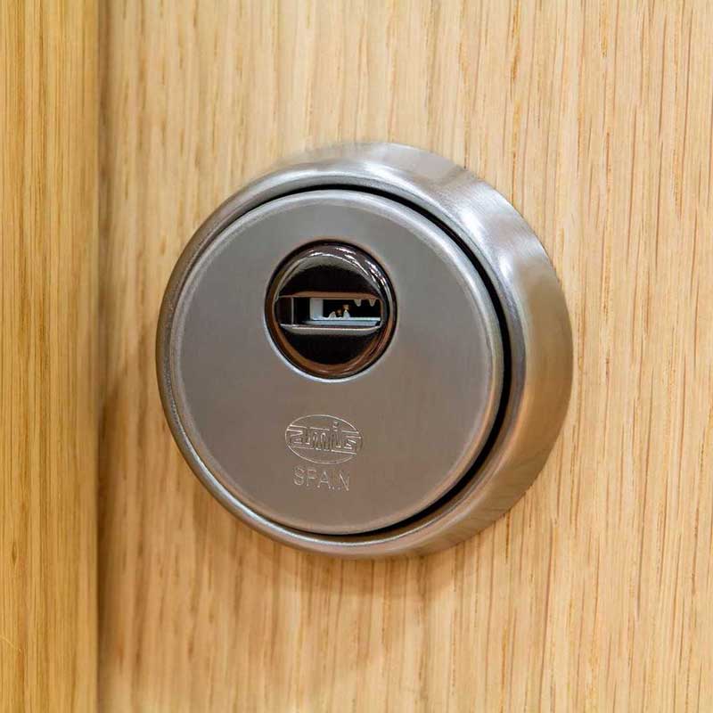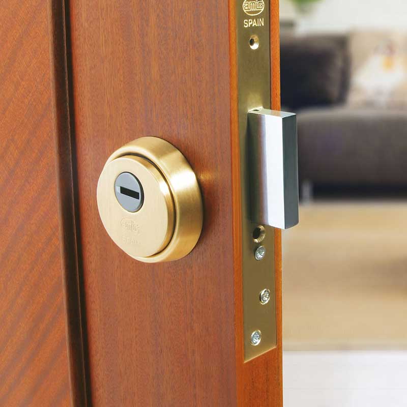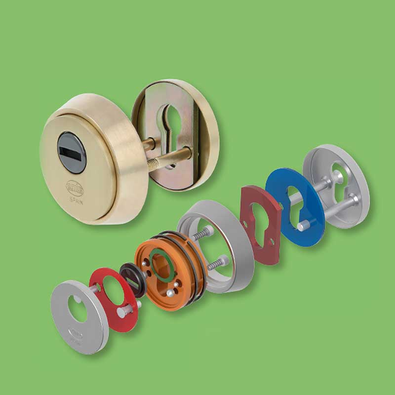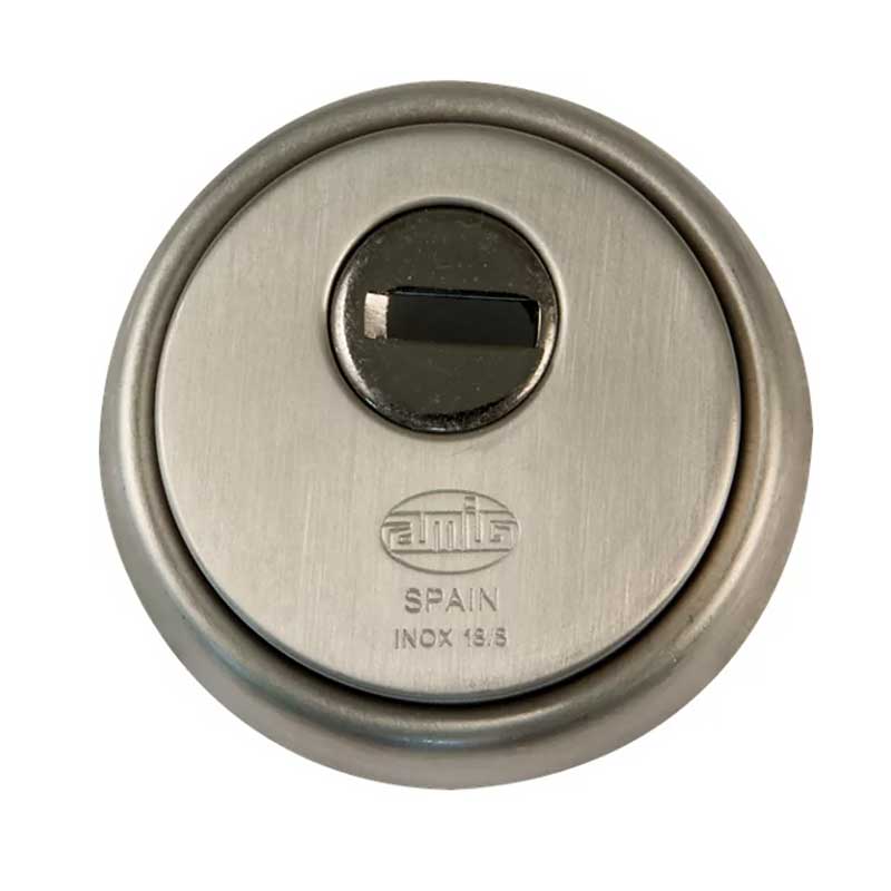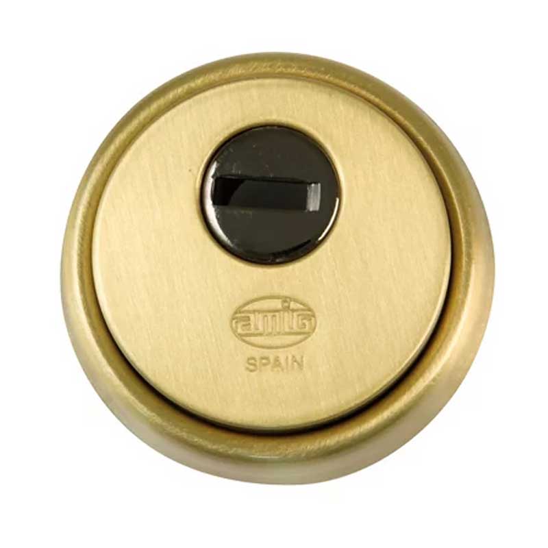 Con un diámetro de 65 mm, este producto está disponible en color cromo mate (plata, níquel) o latón mate (dorado, oro), bajo la marca AMIG. Se trata de un cilindro tipo macizo, modelo comercial Modelo 40, fabricado principalmente en acero. Diseñado específicamente para puertas de entrada.